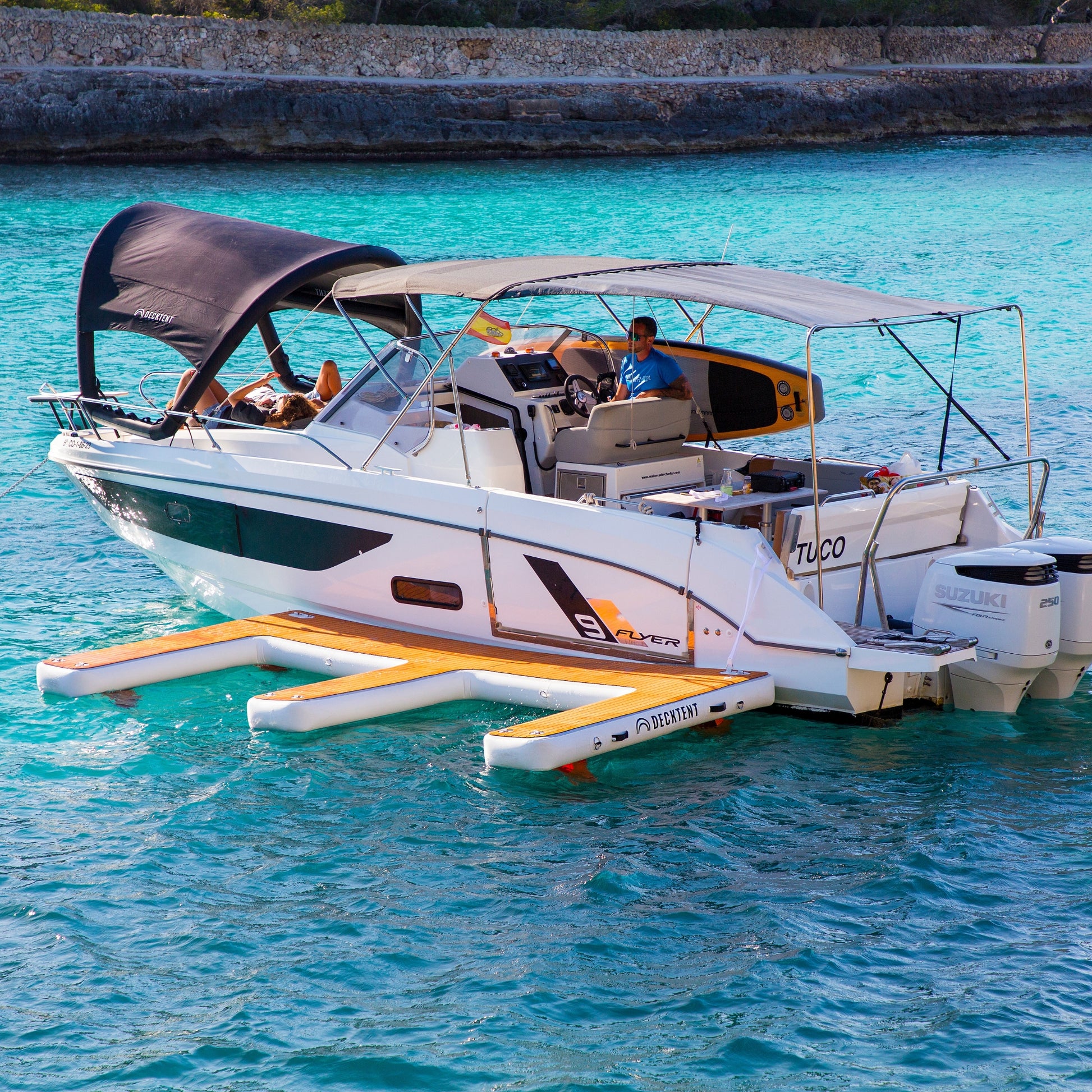 The DECKTENT E-Dock 430 × 230 cm is an extra-large inflatable docking platform designed to maximize space and functionality on the water. Ideal for use alongside yachts, tenders, jet skis, SUPs, or as a central floating hub, it provides a stable and secure surface for boarding, swimming, and connecting multiple water modules.