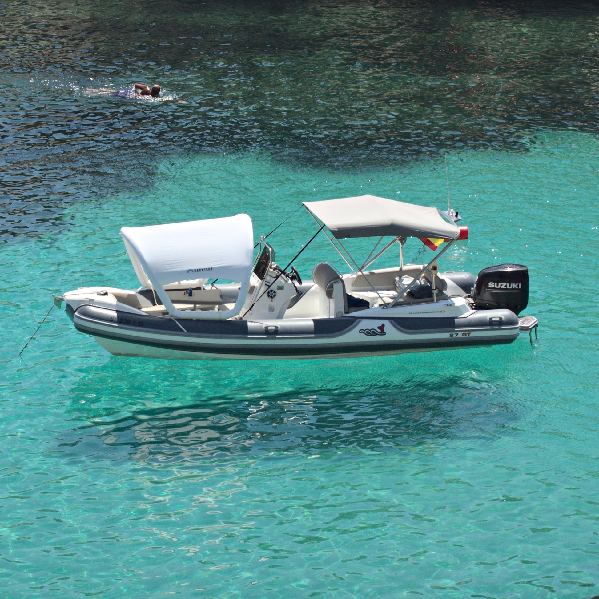 The Decktent Inflatable Minis S is a premium inflatable shade solution crafted for medium-sized boats, RIBs, and sailboats. Quick to set up and lightweight, it transforms your deck into a cool shaded area in minutes — no poles, no drilling, no permanent fixtures.